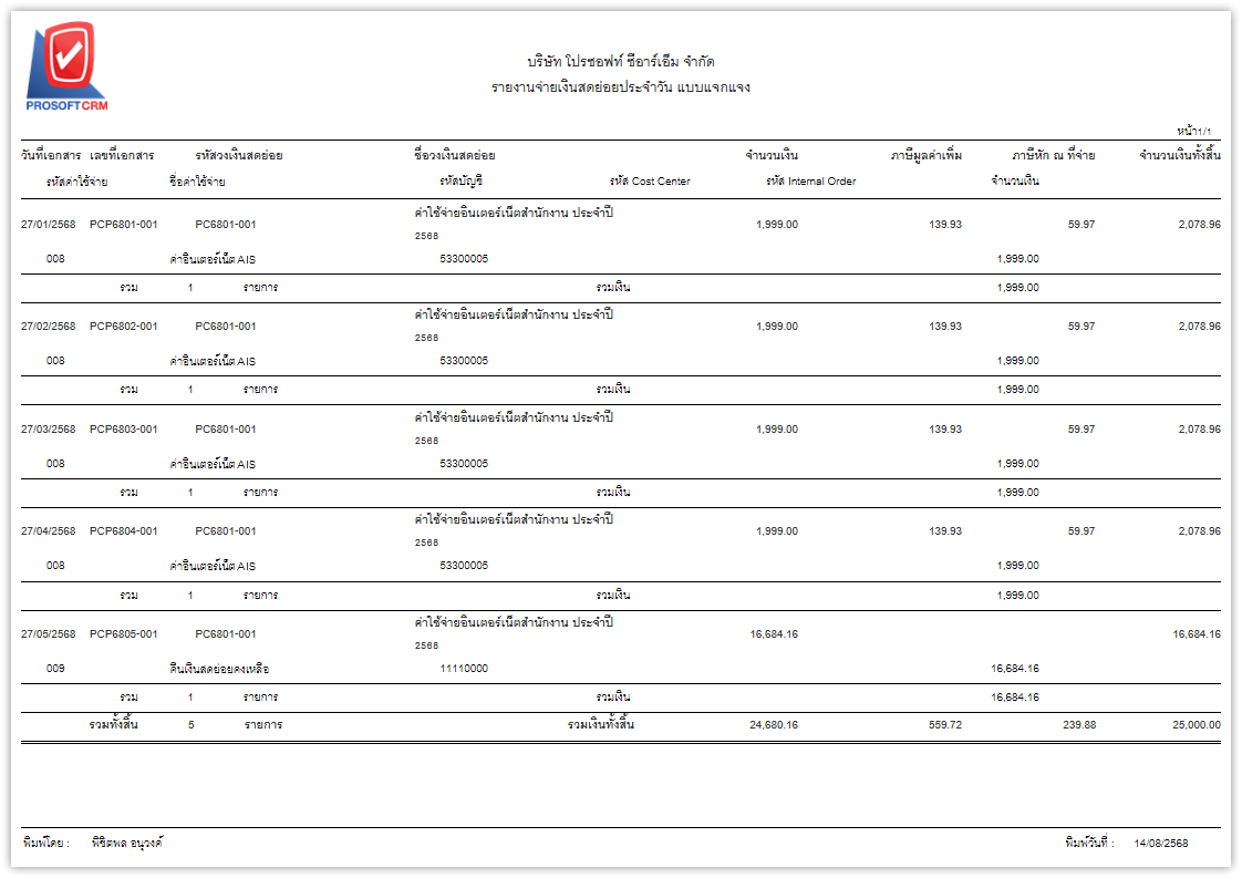 ตัวอย่างรายงานจ่ายเงินสดย่อยประจำวัน [3]
