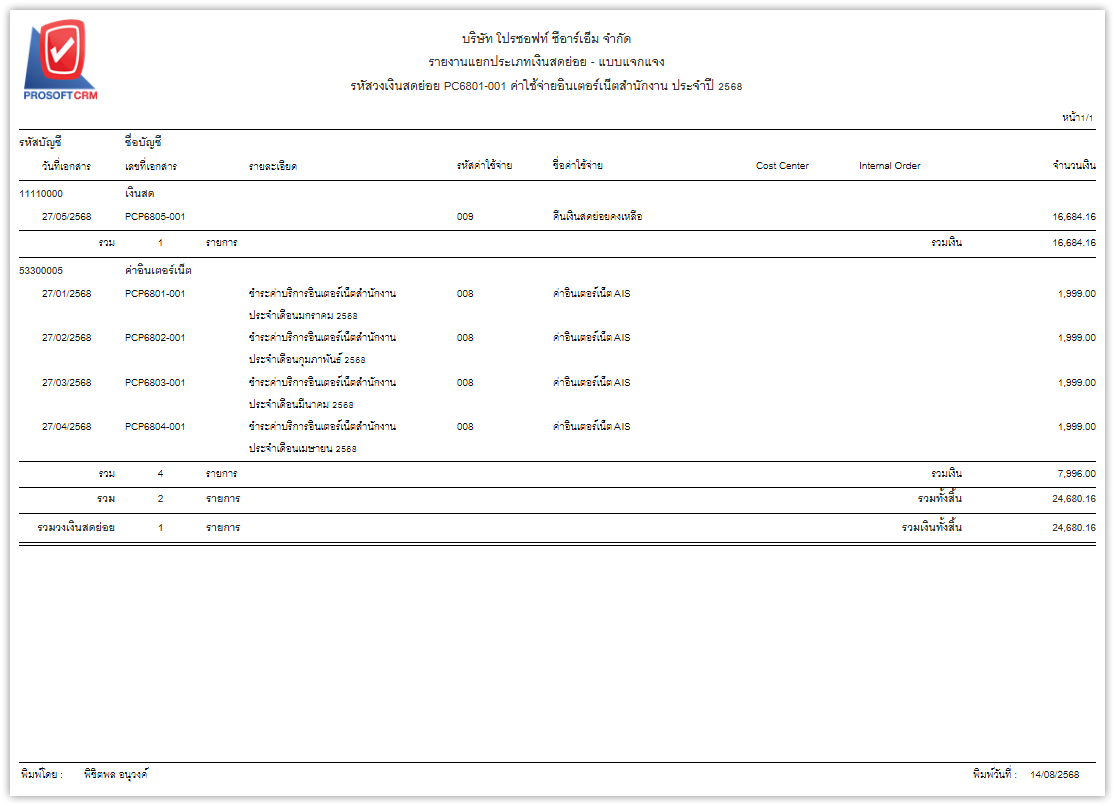 ตัวอย่างรายงานแยกประเภทเงินสดย่อย [4]