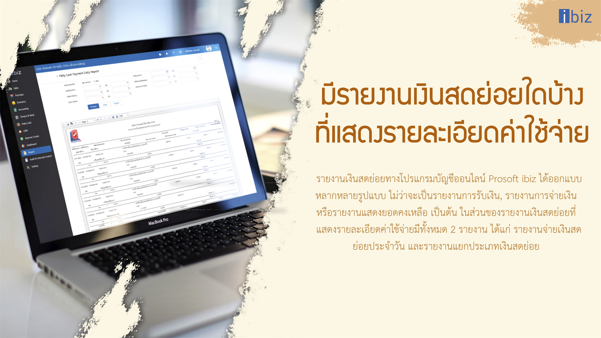 รายงานเงินสดย่อยทางโปรแกรมบัญชีออนไลน์ Prosoft ibiz ได้ออกแบบหลากหลายรูปแบบ ไม่ว่าจะเป็นรายงานการรับเงิน, รายงานการจ่ายเงิน หรือรายงานแสดงยอดคงเหลือ เป็นต้น ในส่วนของรายงานเงินสดย่อยที่แสดงรายละเอียดค่าใช้จ่ายมีทั้งหมด 2 รายงาน ได้แก่ รายงานจ่ายเงินสดย่อยประจำวัน และรายงานแยกประเภทเงินสดย่อย โดยมีรายละเอียดการเข้าถึงรายงานดังนี้