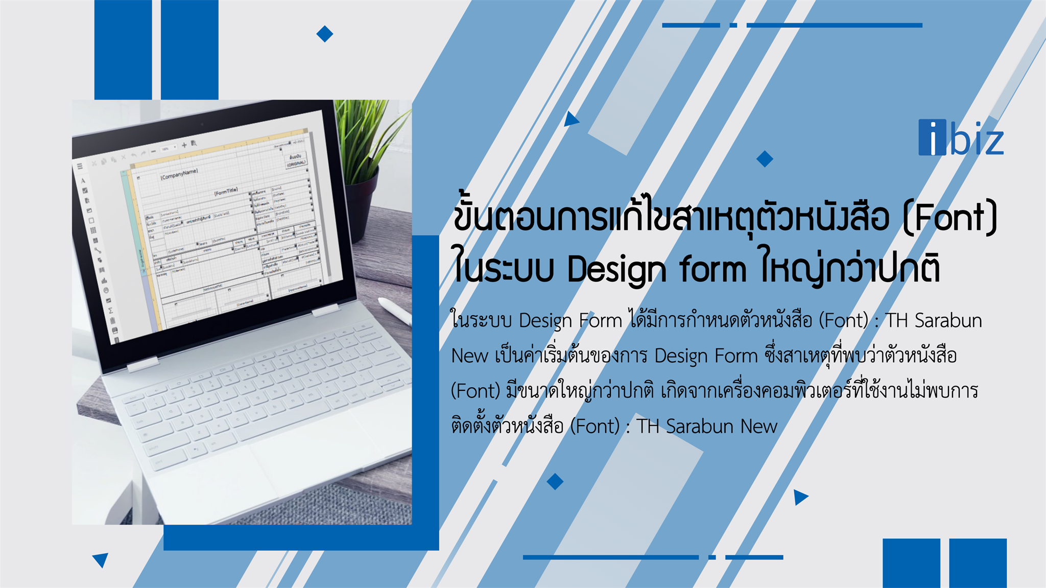 ในระบบ Design Form ได้มีการกำหนดตัวหนังสือ (Font) : TH Sarabun New เป็นค่าเริ่มต้นของการ Design Form ซึ่งสาเหตุที่พบว่าตัวหนังสือ (Font) มีขนาดใหญ่กว่าปกติ เกิดจากเครื่องคอมพิวเตอร์ที่ใช้งานไม่พบการติดตั้งตัวหนังสือ (Font) : TH Sarabun New ดังนั้นผู้ใช้สามารถแก้ไขสาเหตุนี้ได้ผ่านวิธีการดังนี้
